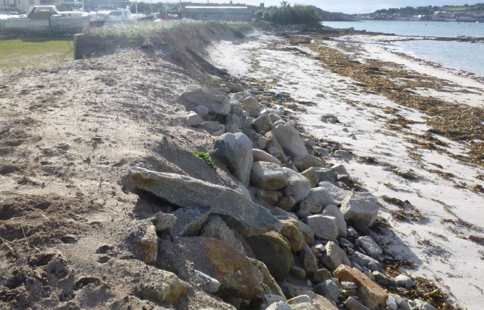 Rocks will be placed across a wide section of Porthloo beach (see below for location). Existing rocks will be reused, and additional granite of the same colour and type will be added. The rocks will be backfilled with sand next to the embankment and the wooden retaining wall that supports the existing defences will be extended along the footpath.