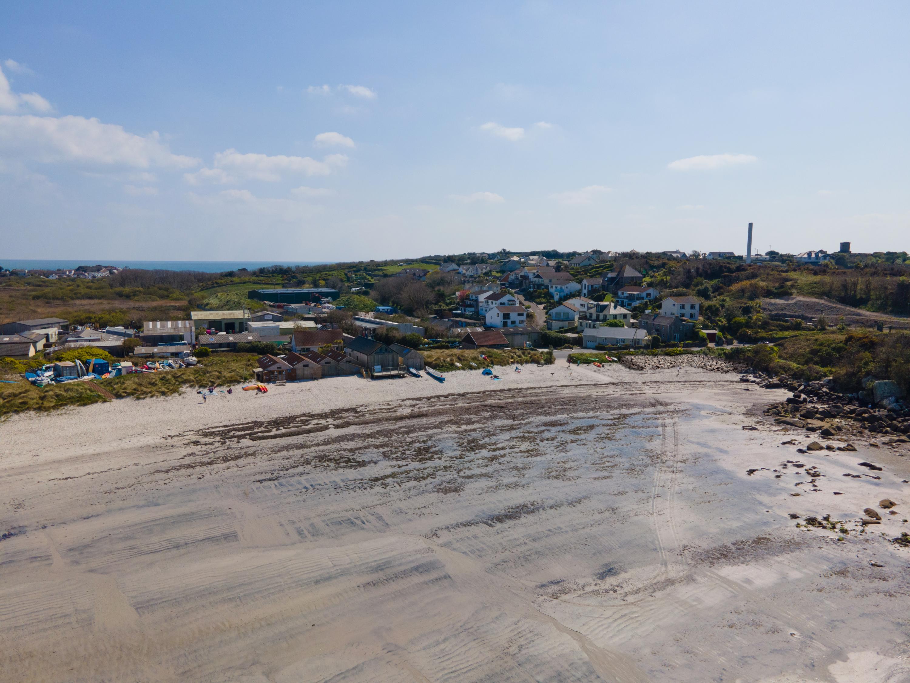 Porthmellon beach is on the outskirts of Hugh Town. Opening directly onto the beach are a couple of businesses, the Sailing Centre and the Beach restaurant, and between these lie the St Mary’s Gig Club sheds. On the other side of Telegraph Road behind Porthmellon is an industrial estate, which backs on to Lower Moors SSSI. The sand dune to the north of the Sailing Centre provides good flood protection to the properties behind, and the gig sheds have installed demountable barriers that provide defence against storm surges.