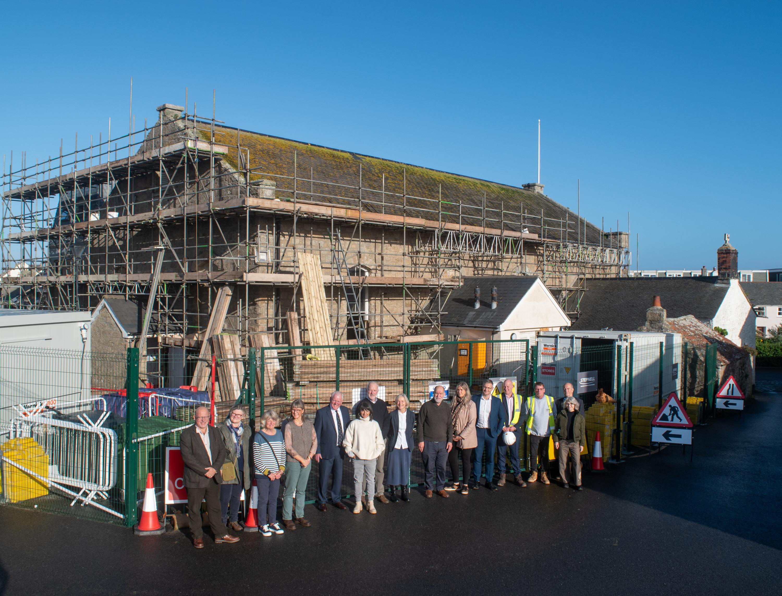 This pivotal moment was celebrated yesterday (17 October 2024) by an on-site ceremony which was attended by Councillors Robert Francis, Tim Dean, Fran Grottick and Steve Sims and representatives from the project’s funding bodies, as well as trustees of Scilly Arts & Heritage, the newly established not-for-profit charitable business which will be taking over responsibility for the facility from the Council upon the completion of the construction and fit-out.