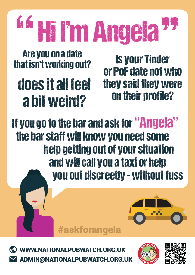 You may notice this poster displayed in pubs around the islands. This poster means that staff in that pub are trained to look out for people caught in vulnerable situations and know what to do if a member of the public comes to the bar and ‘asks for Angela’. If you are on a night out and feel you are in an uncomfortable situation or feel vulnerable or threatened, you can go to the bar and ask for Angela and the bar staff will discreetly help you. This campaign is aimed at men and women alike and is in place to keep everyone safe.