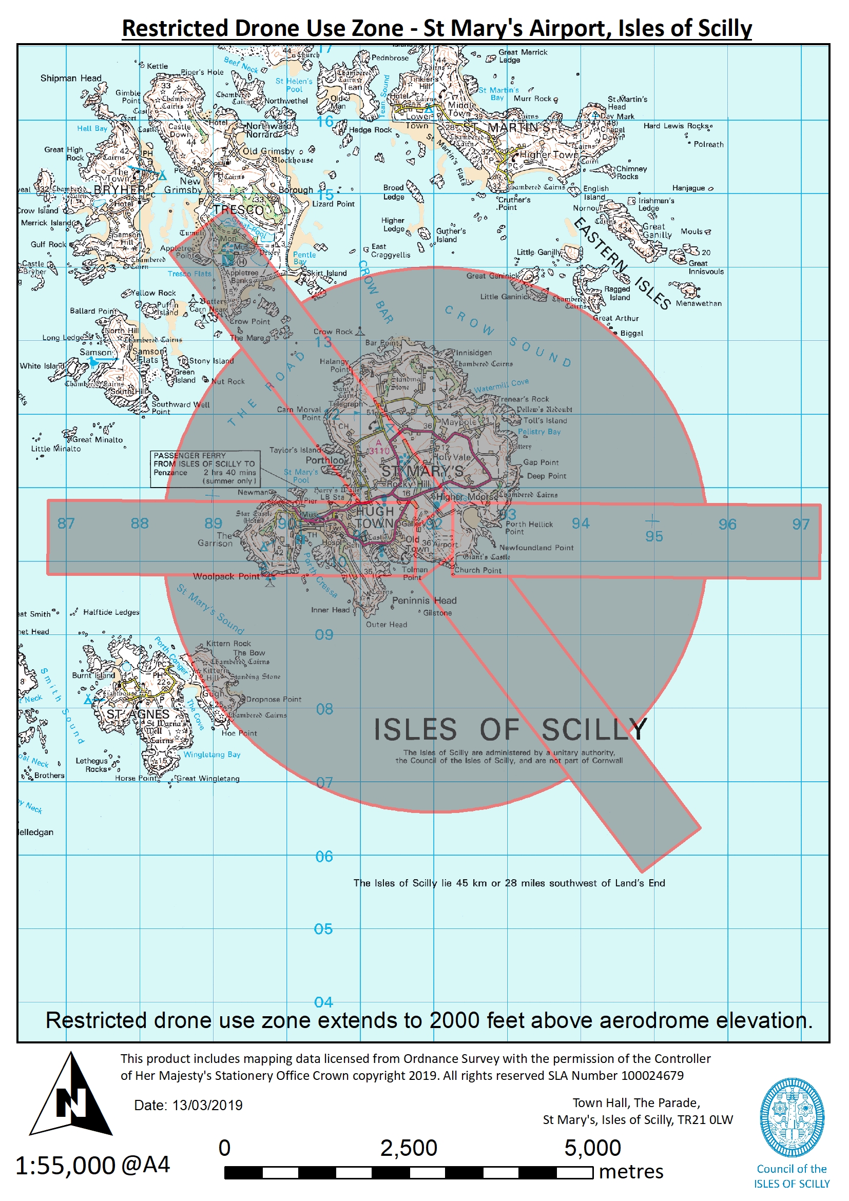 The Isles of Scilly has a busy airspace with condensed flying operations taking place both at the airport and surrounding islands, which would include military, search & rescue and HEMS Helicopter flights. We urge all drone operators intending to fly outside of the Restricted Airspace to still contact ATC with their location and timings with altitudes so that Air Traffic Control can inform all aircraft in the vicinity. Please call ATC on 01720 424335.