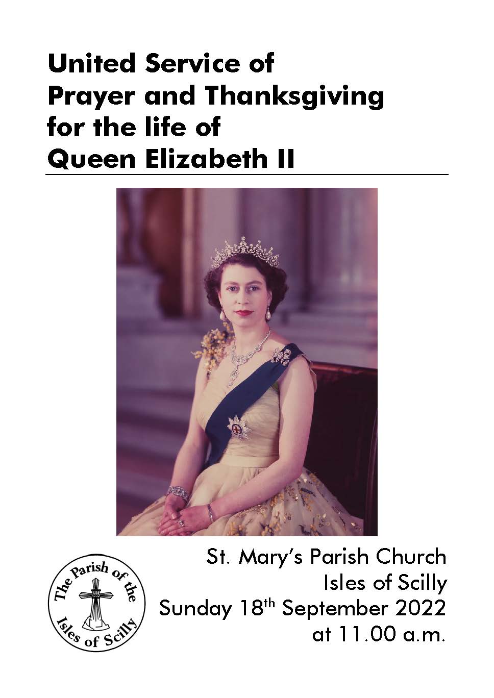 A United Service of Prayer and Thanksgiving for the life of Queen Elizabeth II will take place at St Mary’s Parish Church at 11am on Sunday, 18 September 2022.